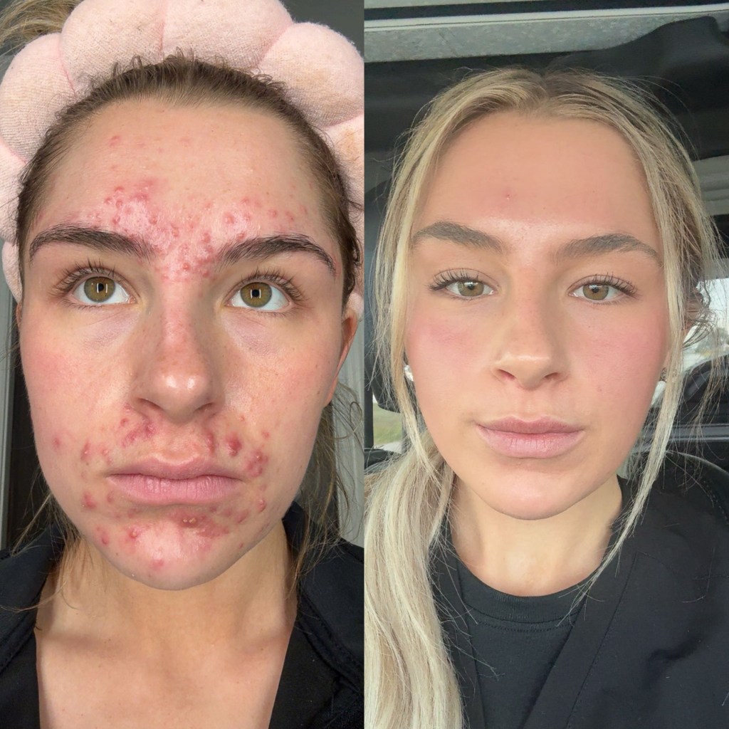 As we know, there can be other reasons acne arises and ways/tips/tricks to improve it. A suggestion I would highly encourage, would be to taking progress photos and keeping an acne diary each and every day; this will allow you to monitor your acne and be able to pinpoint triggers. (Ask yourself: What is making the acne worse? What did I do/eat yesterday that might have triggered a flare? Changes in products? Stress?) Some of my favorite things were causing my acne flares, and I thought they were “healthy”! The biggest culprits were energy drinks and protein powder with collagen in it! (If you are acne prone, I would suggest switching to coffee and only consuming plant based protein powders.) Another suggestion I would have would be collaborating with an aesthetician to get their advice on the correct skincare regimen for you and your skin type.